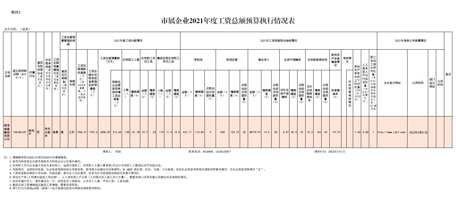 市屬企業(yè)2021年度工資總額預(yù)算執(zhí)行情況表